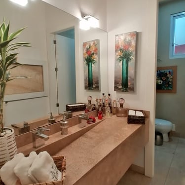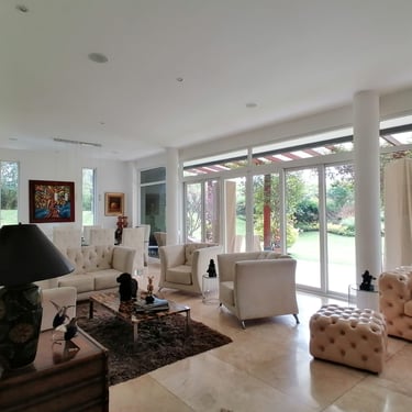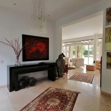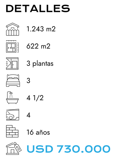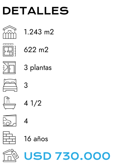 Ubicada en el sector de Tanda dentro de una urbanización privada, con seguridad 24/7. Esta propiedad de tres pisos, es un lugar exclusivo y seguro, con vista espectacular. Cuenta con un área de terreno de 1.243 m², 622 m² de construcción cubierta y 980 m² de construcción abierta. Rodeada de jardines, árboles frutales y un huerto. En la planta baja cuenta con lobby, área social, estudio, baño social, cocina independiente, área de máquinas, cava y porche con pérgola. En el segundo piso está el dormitorio master, baño completo, jacuzzi y walk-in closet. Además cuenta con dos habitaciones con baños completos, sala familiar y terraza con espejo de agua. En el tercer piso está una oficina, gimnasio con techo retráctil automático, terraza y bodega . En los exteriores de la casa contamos con el cuarto de servicio con baño, 2 bodegas, bomba de agua. Además una hermosa zona BBQ, con horno de pan y estufa; comedor exterior y 4 estacionamientos cubiertos. Alícuota mensual $210.