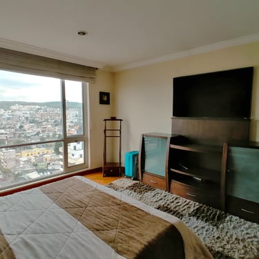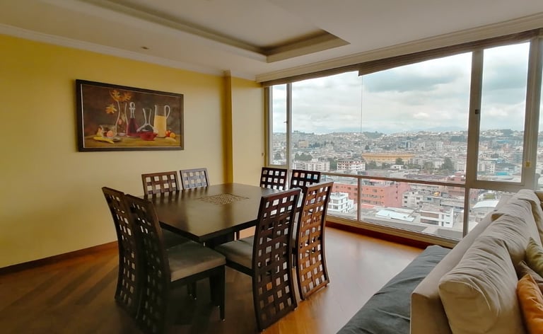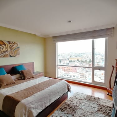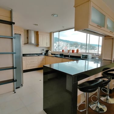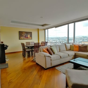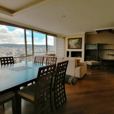 Espectacular departamento penthouse dúplex con una ubicación privilegiada y una maravillosa vista panorámica de toda la ciudad de Quito. Con 420 m² (área total), este impresionante espacio cuenta con área social, cocina abierta, tres dormitorios cada uno con baño completo, estudio, baño social y sala de estar. Cuenta con área propia del departamento con gimnasio, sauna, baño completo, jacuzzi, terraza con pérgola y área para bbq. Además tiene cuarto de servicio con baño completo, cuarto de máquinas, cuarto adicional, 4 parqueaderos y 2 bodegas. Se puede ingresar por los dos pisos. Esta propiedad ofrece seguridad 24/7 y posee acabados de alta calidad, garantizando lujo y comodidad. Aprovecha el financiamiento directo y la posibilidad de entregar otra propiedad como parte de pago. ¡Aprovecha su valor de oportunidad!